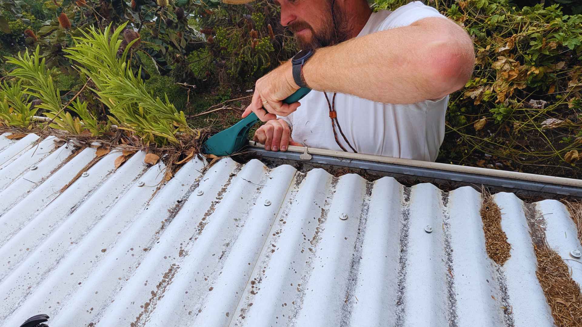 Once the gutters are clear, it’s worth doing a quick lap of the roofline (from the ground) to spot places where leaves love to lodge: behind solar panels, in corners, and where roof meets fascia.